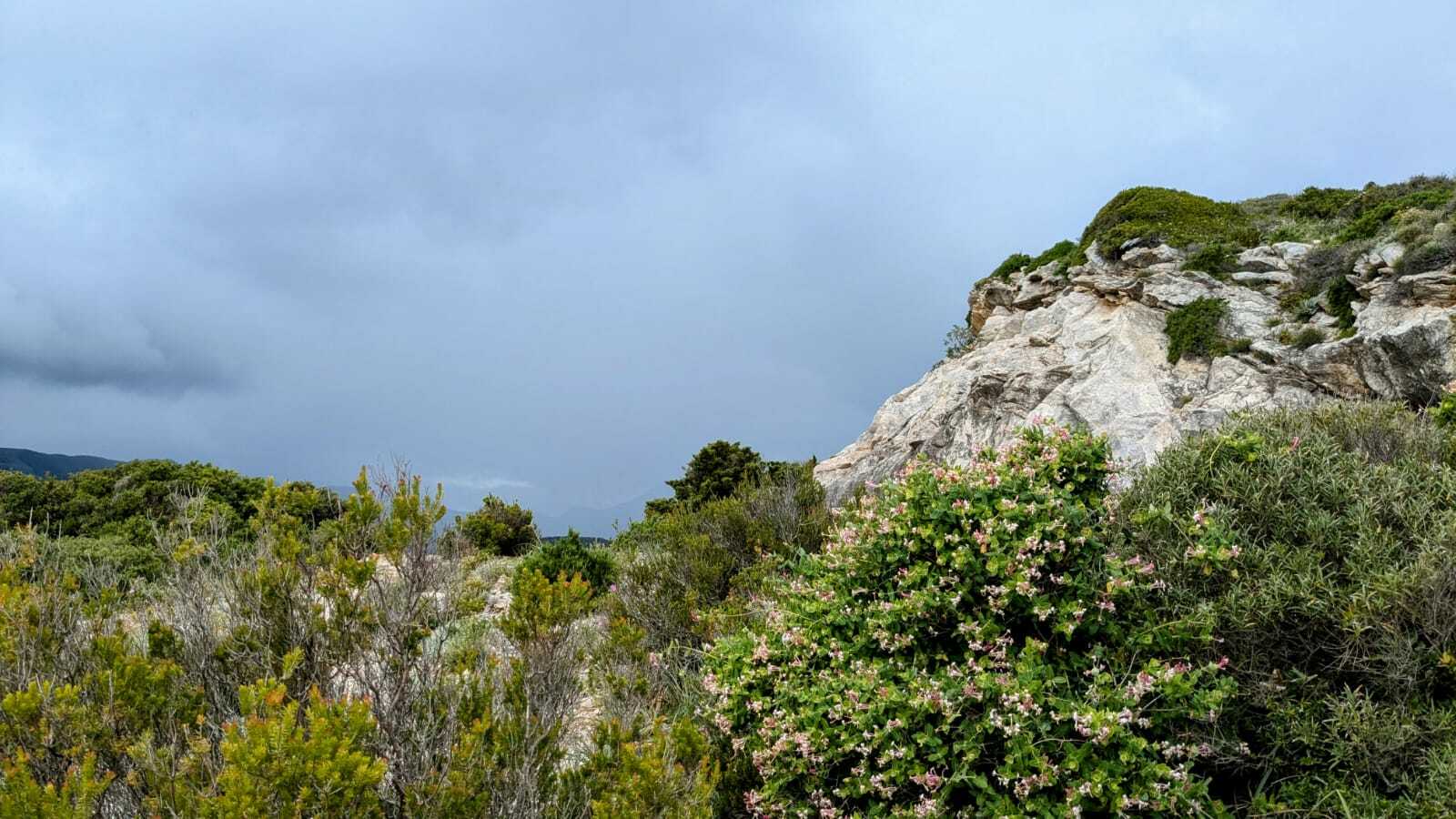 Changement de programme cause météo pluvieuse : nous entreprenons le sentiers des douaniers au départ du port de Macinaggio - 11 kms + 225 m.